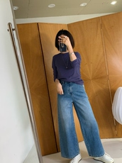 2LINKS|复古水洗蓝色 超阔裤腿 随意慵懒挂 七分牛仔裤