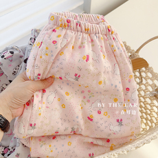 日系可爱卡通全棉双层纱睡裤女夏季薄款宽松家居裤长裤短裤可外穿