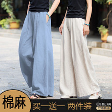 黑色阔腿裤女夏季2025年新款宽松直筒牛仔棉麻窄版春秋拖地休闲裤