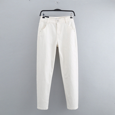 欧洲站春秋新款白色贴布小脚显瘦牛仔哈伦裤宽松大码老爹裤女