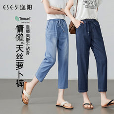 高腰复古哈伦牛仔裤女春夏2025新款宽松显瘦松紧腰直筒小脚老爹裤