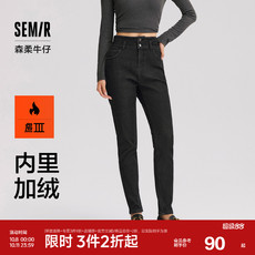 森柔牛仔|森马牛仔裤女修身加绒长裤2024新款冬季保暖小脚裤显瘦
