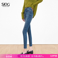 SJOG重工水洗!猫须显瘦提臀靴裤弹力紧身九分牛仔裤女翘臀小脚裤
