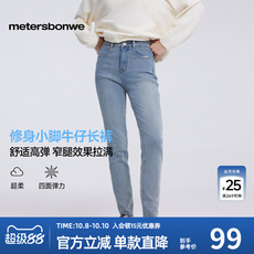 商场同款 MOISSAC摩萨克棉混纺时髦蓝色修身小脚牛仔长裤女