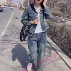 时尚气质连帽牛仔套装2025早春新款女神范百搭外套小脚裤两件套