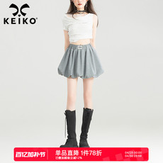 KEIKO miu系A字花苞裙短裙夏季法式甜美风高腰蓬蓬半身裙子裙裤
