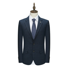 PL90皮春秋男式西服 羊毛三粒扣无开衩商务西装外套 蓝色