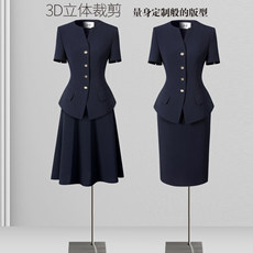 藏青色短袖西装套装裙气质上班服夏酒店经理前台接待珠宝店工作服