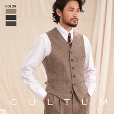 【绅士盔甲 50羊毛】CULTUM复古人字纹单排扣六粒扣V领西装马甲男