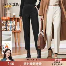 逸阳九分黑色毛呢烟管裤女加厚2025年冬季新款小个子直筒哈伦西裤
