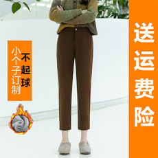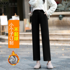 毛呢直筒裤小西裤女秋冬加厚加绒145小个子150八分显瘦九分烟管裤