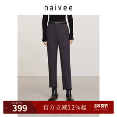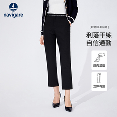 Navigare意大利小帆船灰色直筒休闲裤女秋季显瘦九分裤子商务西裤