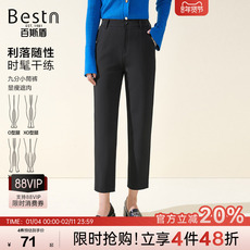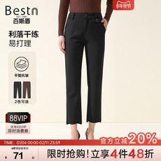 百斯盾官方女士西裤秋冬新款休闲通勤亲肤保暖修身九分铅直筒女裤