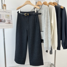 奥特莱斯撤柜清仓捡漏咖色毛呢直筒裤女休闲西裤九分加厚烟管裤秋