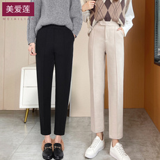 毛呢哈伦裤加厚春秋冬直筒西裤九分女裤子宽松烟管裤大码加绒