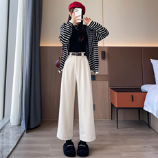 秋冬厚款南韩丝垂顺坠感九分阔腿裤高腰直筒裤西裤阔脚裤肥腿裤女
