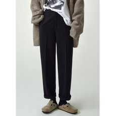 SIXI四喜家秋冬 黑色经线毛呢直筒西裤女显瘦九分裤休闲裤烟管裤