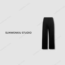 逸阳小个子黑色薄绒西装裤女九分裤冬季高腰直筒烟管职业休闲西裤