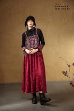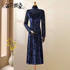 楚馨设计师原创文艺复古民族风高领刺绣高弹棉百搭打底连衣裙秋冬