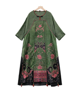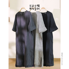 千椿物喜原创新中式民族风亚麻重工刺绣圆领宽松连衣裙大袍子袍服