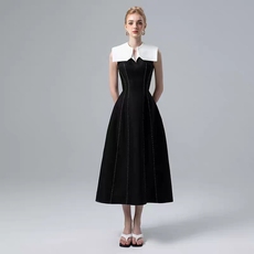高级感气质背心连衣裙越南设计师黑白撞色披肩两件套优雅显瘦长裙