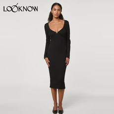 【设计师款 李冰冰/万茜同款】春季新款罗纹针织修身直筒连衣裙女