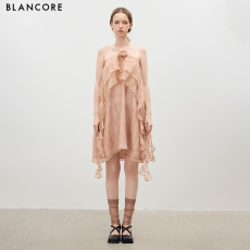 【设计师品牌BLANCORE】2025夏新款粉色荷叶边多巴胺海边连衣裙