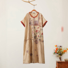 小耳出品【无麻不夏】100.%亚麻慵懒休闲廓形宽松连衣裙百搭长裙