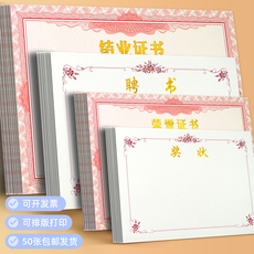 50张装包邮经典红米黄色防伪花系列荣誉证书结业聘书毕业证书内页内芯空白纸16k12k8k6k可定制订做打印开票