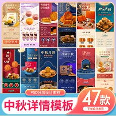 中秋节电商淘宝天猫店铺团圆月饼蟹黄详情页模板PSD格式设计素材