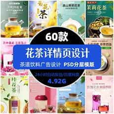 高清花茶详情页店铺装修设计psd模板首图茶叶饮料广告精选素材