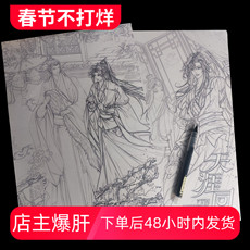 魔道祖师摸鱼线条画临摹控笔上班解压摸鱼涂色节日礼物手工画