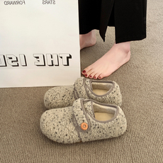 复古搭扣软底平底鞋加绒毛毛鞋单鞋女2025冬季新款保暖棉鞋豆豆鞋