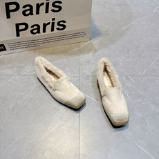 羊皮版~法式毛毛鞋女冬季外穿2025新款平底水钻单鞋加绒豆豆鞋女