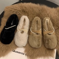 达芙妮玛丽珍女鞋毛毛鞋2025新款冬季鞋子毛绒单鞋平底鞋豆豆棉鞋