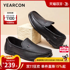 【舒适型格】奥康休闲皮鞋男软面真皮套脚豆豆鞋一脚蹬驾车乐福鞋
