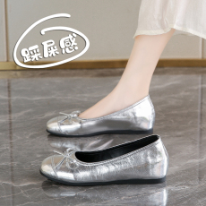 蝴蝶结内增高银色单鞋女2025新款夏季一脚蹬豆豆鞋软底芭蕾舞鞋子