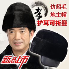 新款护耳仿貂皮地主帽男士中老年秋冬仿水貂绒老头帽加厚保暖棉帽