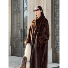 流星复古 新款仿水貂绒立领中长款宽松皮草外套环保毛毛大衣女冬