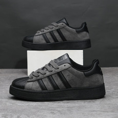 黑色贝壳头男士板鞋春秋厚底休闲运动鞋情侣透气耐磨防臭德训鞋男
