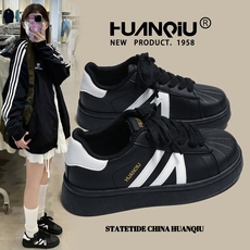 金标黑色贝壳鞋男鞋女贝壳头小白鞋2025新款厚底板鞋休闲运动鞋子