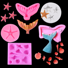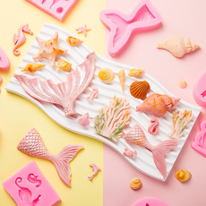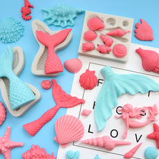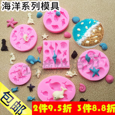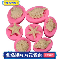 海洋系硅胶模具海星海螺贝壳海马鱼尾翻糖巧克力模型DIY烘焙工具