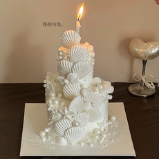 简约纯白色氛围生日蛋糕立体贝壳硅胶模具蛋糕装饰甜品珠糖配件