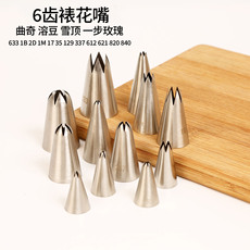 不锈钢6齿裱花嘴小号贝壳一步玫瑰蛋白糖雪顶大号奶油嘴烘焙