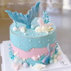 梦幻海洋公主女孩生日蛋糕装饰可爱美人鱼贝壳海星鱼尾烘焙摆件