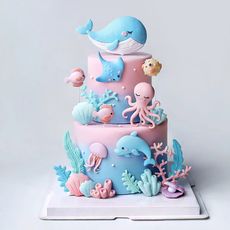 网红烘焙海洋生日蛋糕装饰摆件鲸鱼八爪魔鬼鱼海豚水母贝壳插件