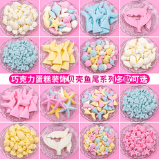 巧克力贝壳海洋蛋糕冰淇淋鱼尾装饰品摆件美人鱼尾巴海螺烘焙插件