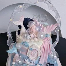 氛围感海洋公主人鱼蛋糕装饰梦幻童话贝壳海星鱼尾透明球插件配件