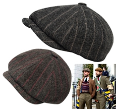 包邮小贝英式男士八角帽报童帽贝雷帽 帽子男秋冬天韩版潮条纹版