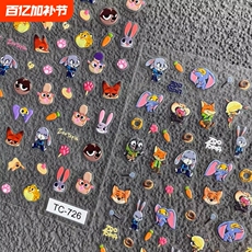 新款童趣涂鸦浮雕美甲贴纸多巴胺兔子可爱小熊diy立体指甲背胶贴
